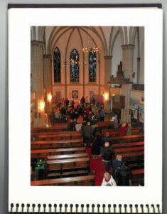 Die Ausstellung „Rendezvous mit der Antike“ bewerte ich deshalb als erfolgreich, weil sie – gut besucht – ein Anstoß war, neue Themen zu initiieren. So eben die drei Themen der drei Wendebilder. Das dritte Wendebild „Taumelndes Blau“ verwandelte sich in ein stürzendes Blau. Die endgültige Bild-Idee war dann: Mehrere blau-schwarze Göttinnen stürzen, von einer unsichtbaren Gefahr getrieben, einen Felsen hinunter. Dieses eine Bild führte dann assoziativ und auf komplexerem Weg zu einem gänzlich neuen Thema, das sich mit Gewalt, Unrecht und Grausamkeiten beschäftigt. Es ist, als wenn sich plötzlich eine Schleuse öffnet und den Blick auf eine Vielzahl von Themen freigibt, bis etwa auf den „Arabischen Frühling“ mit der Selbstverbrennung des Gemüsehändlers Mohamed Bonazzi in Sidi Bouzid. – Die Ideen eilen weit voraus, die Realisierung ist der steinigere Weg.